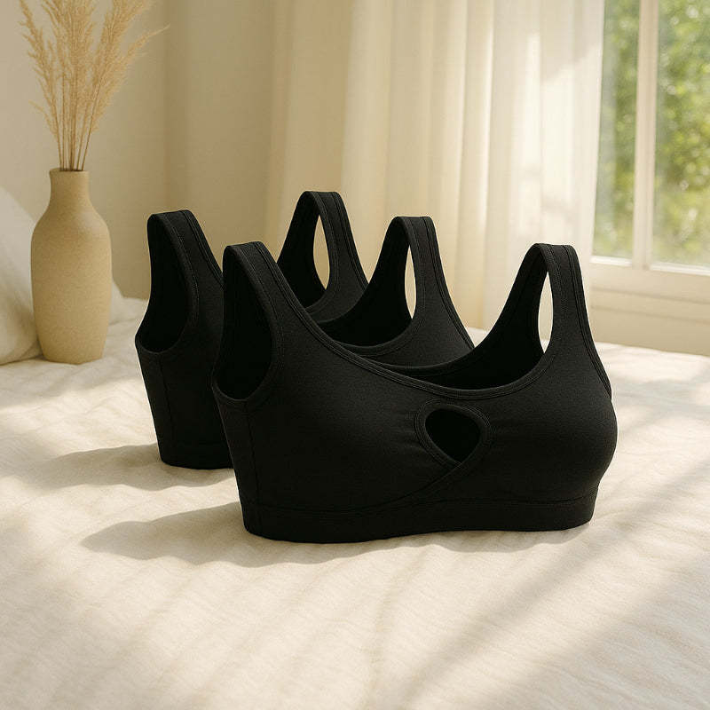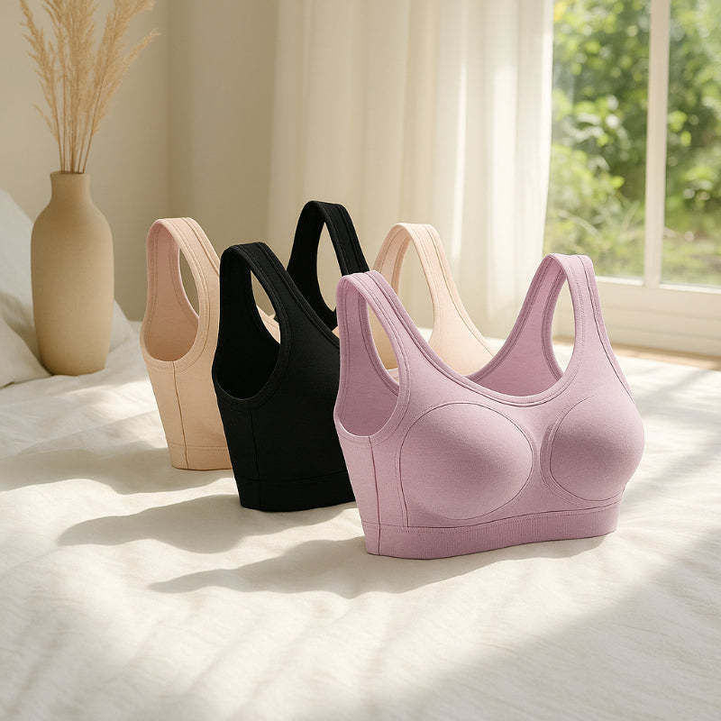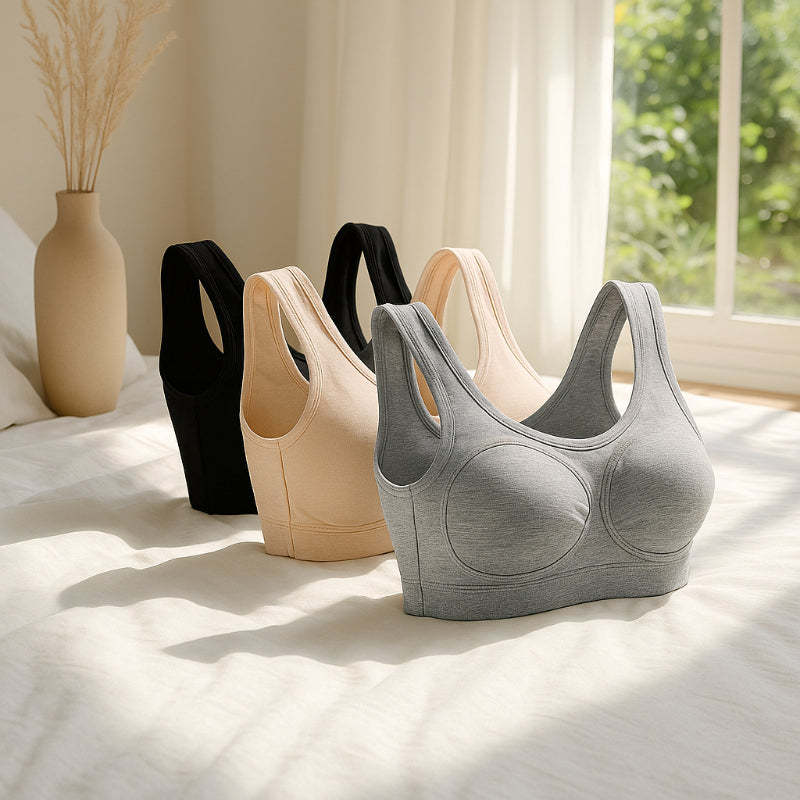 Each bra includes an inner comfort band that keeps everything in place, even when reclining. Whether sitting at your desk, moving around, or lying down, this band ensures the bra stays snug and supportive.