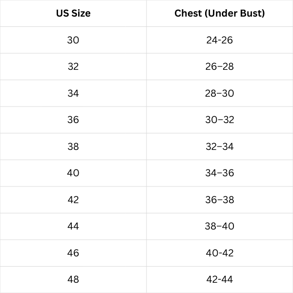 Size Chart (Inches):