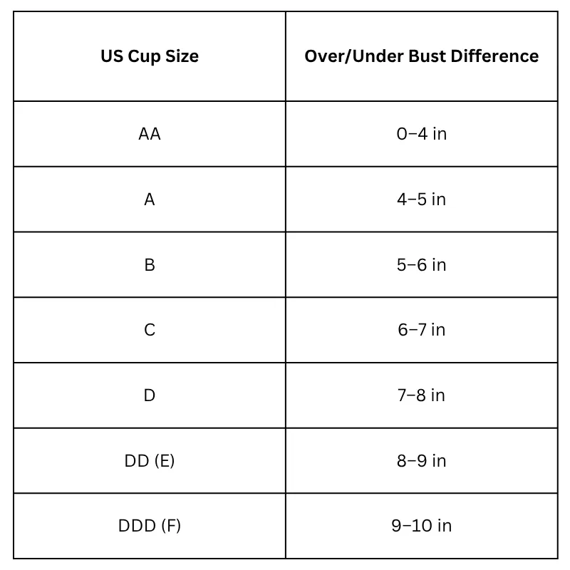 Cup Size Chart (Inches):