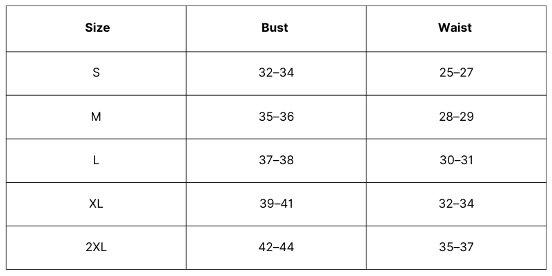 Size Chart Inches):