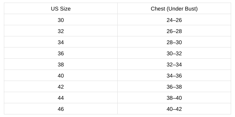Size Chart (Inches) :