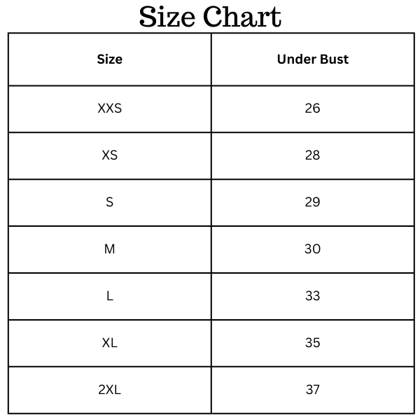 Size Chart (inches):